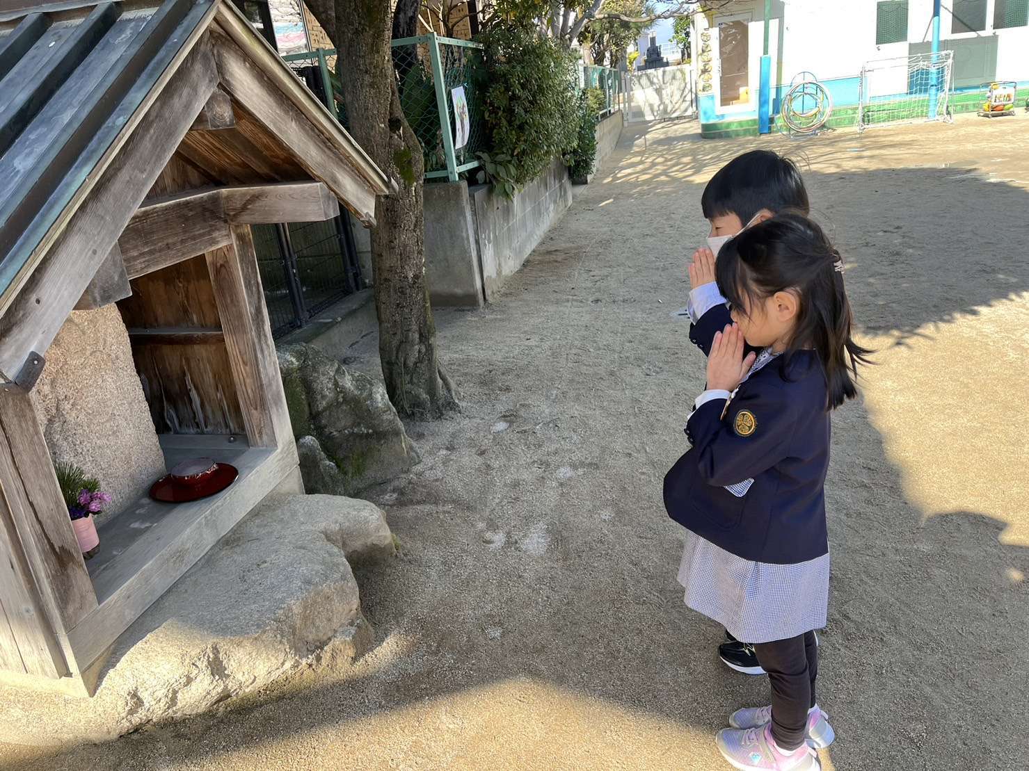 鏡餅に入っている仏様と年神様のパワーをいただき、元気パワー全開の子ども達でした。