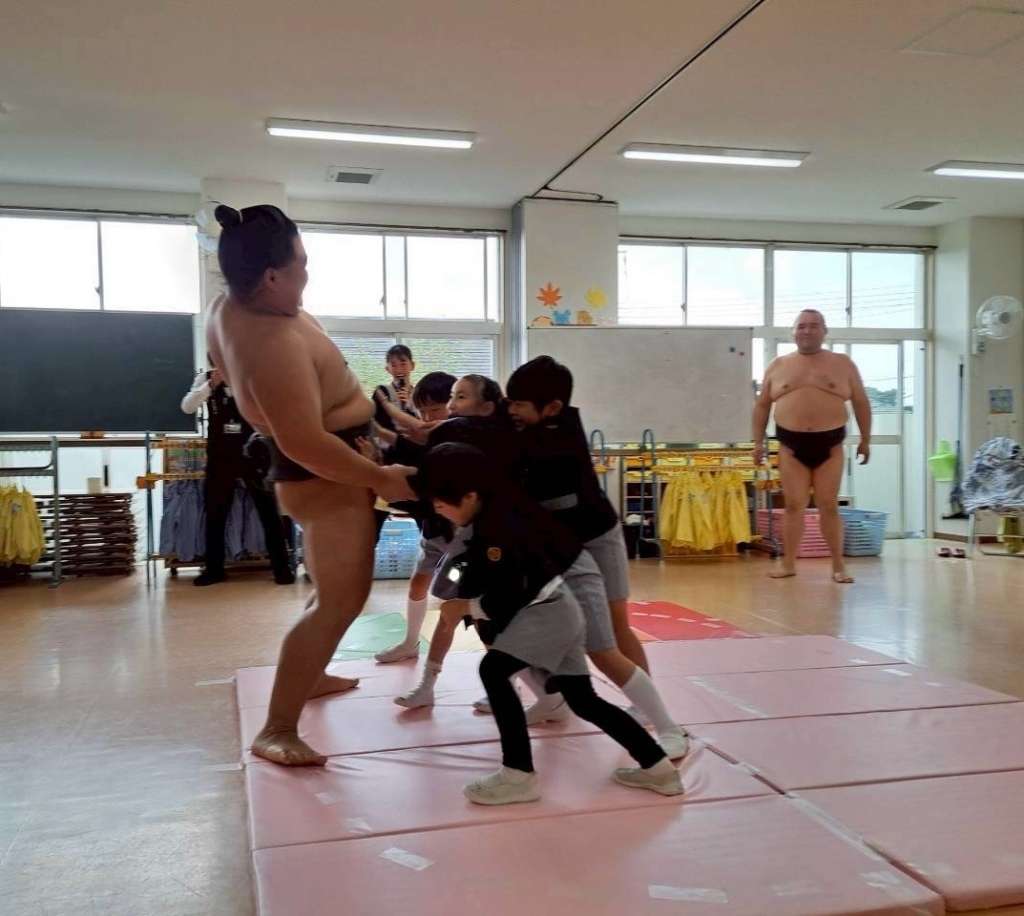 伊勢ケ濱部屋のお相撲さんが2名、須玖幼稚園に来てくれました! お相撲さんに会え... -