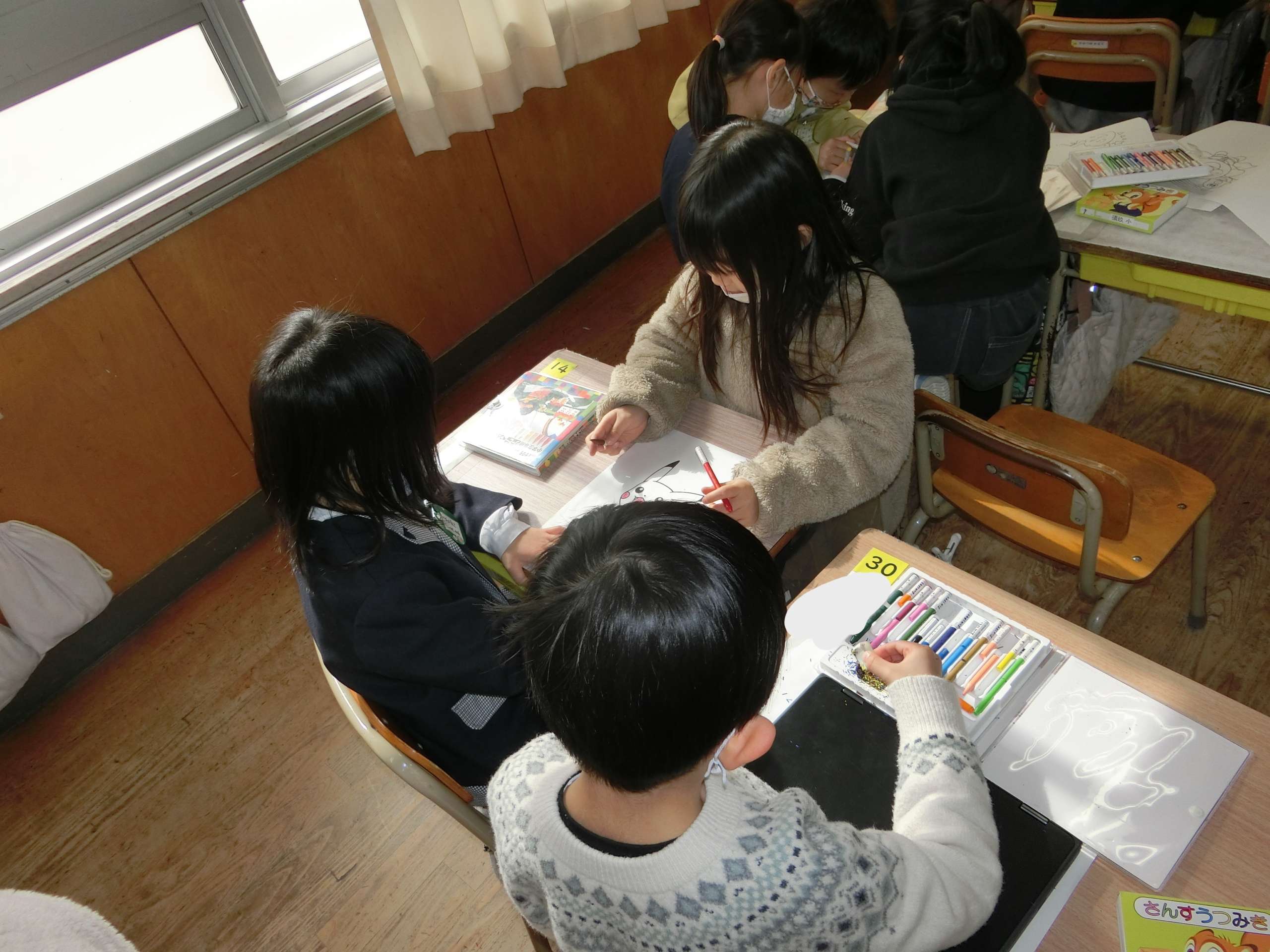 ぬりえや、折り紙で遊んだり