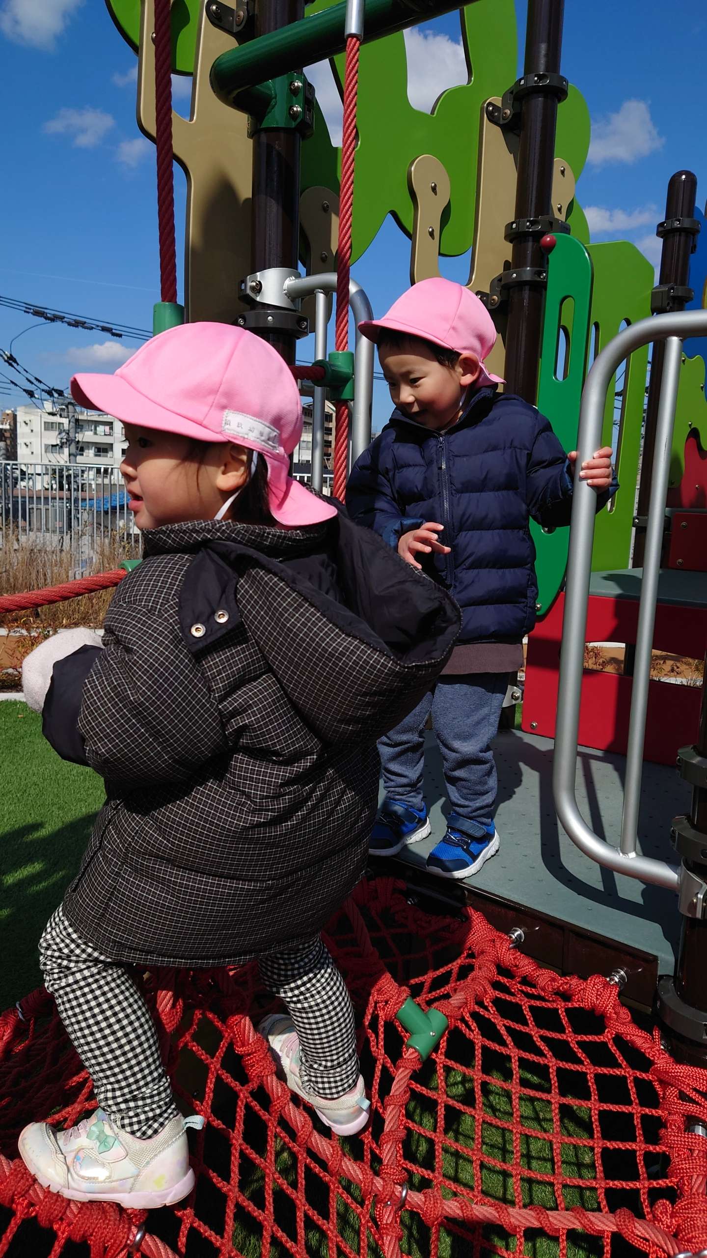 色んな形のすべり台や、回転遊具など、園にはない遊具で仲良く夢中になって遊びました。
