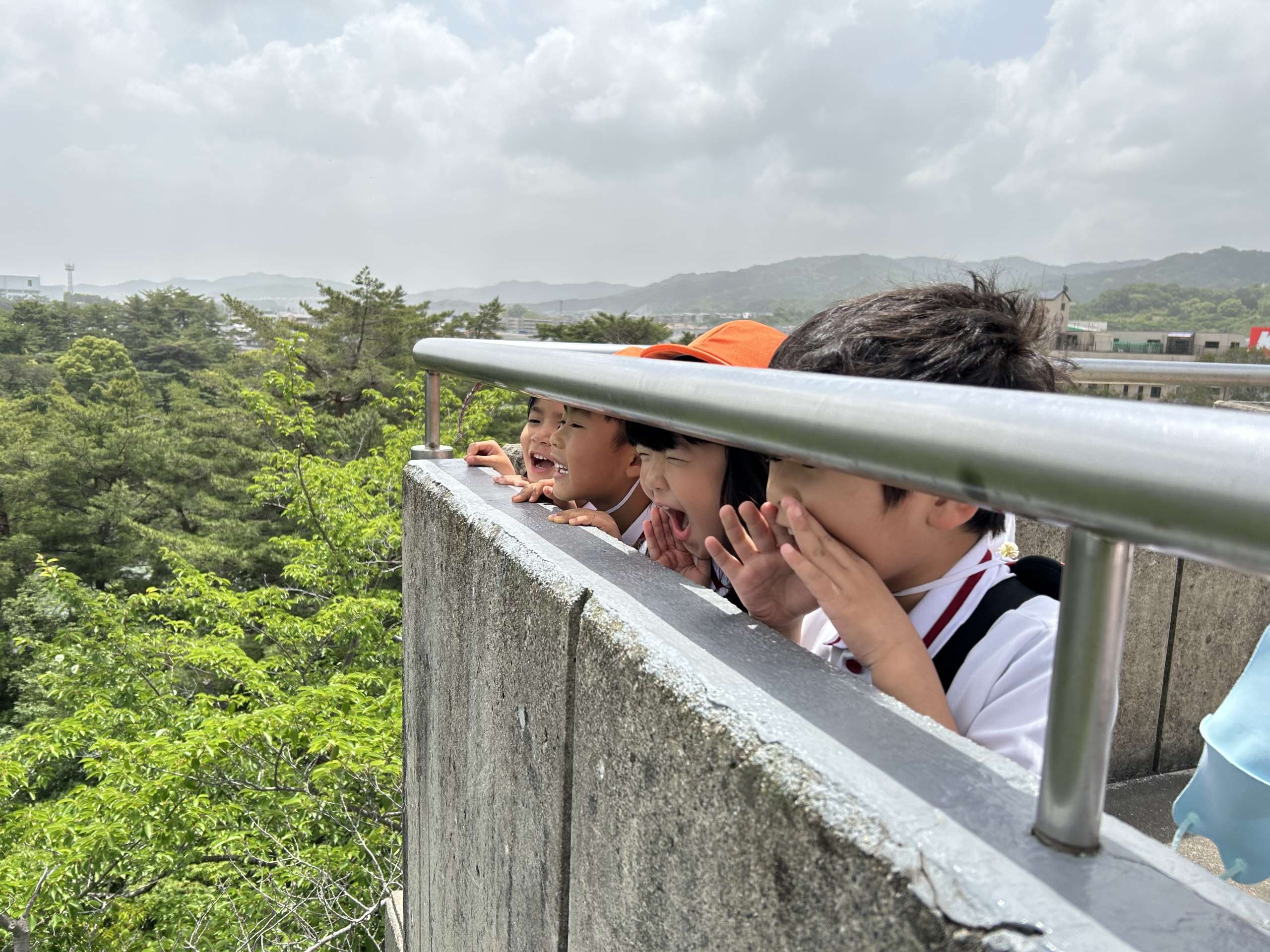 最後は展望台にも登り、綺麗な景色を見て「風が気持ちいい〜!」と大喜び!