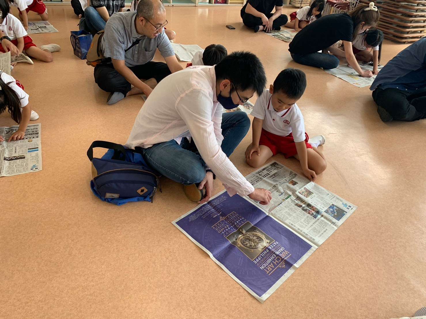 年長組のゆり組さんと、さくら組さんは、新聞紙を使った遊びを楽しみました。
