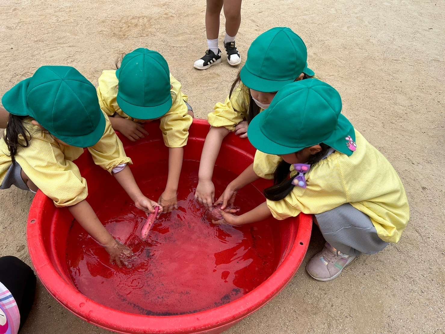 先日、明日はさつまいもを収穫するよ!というと、やったー!と、とても楽しみにしていた子どもたち。