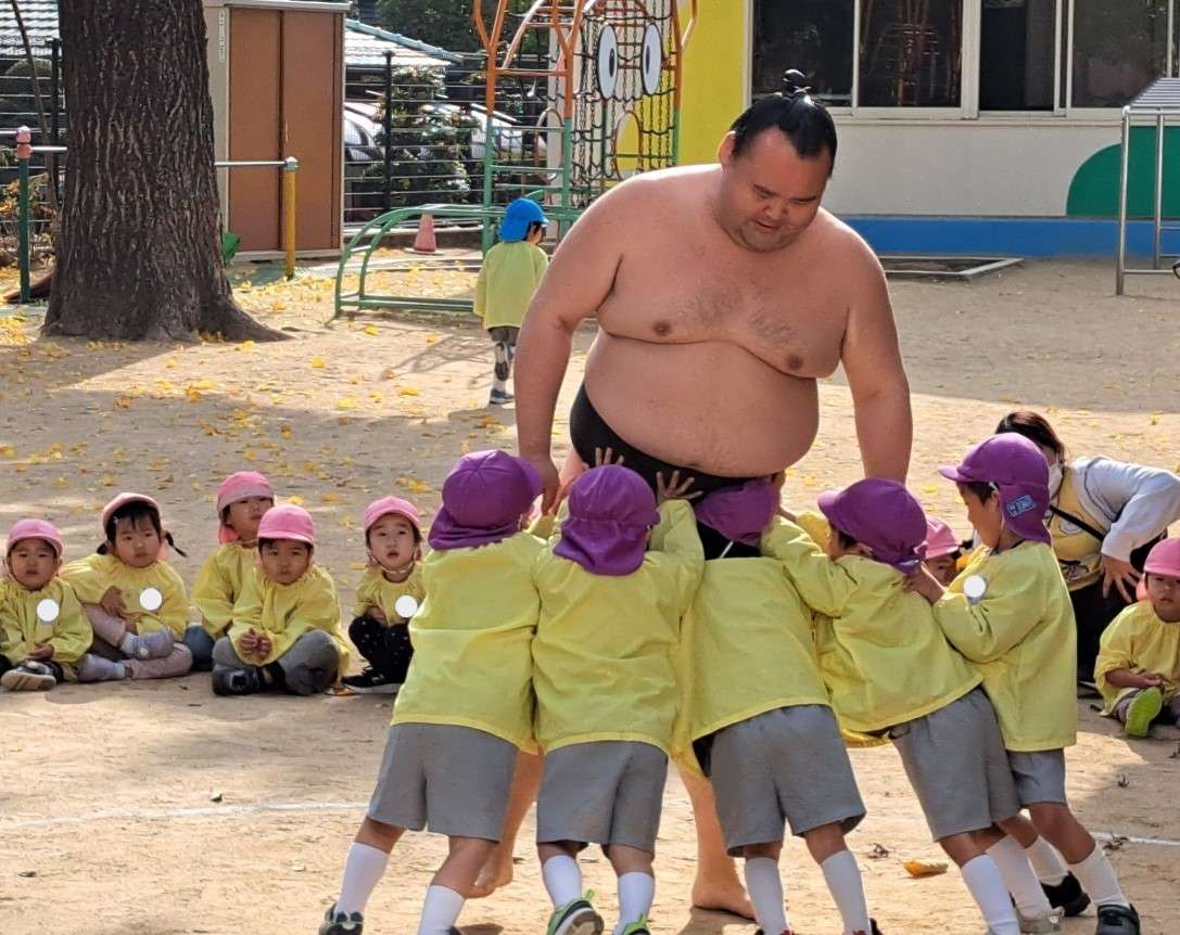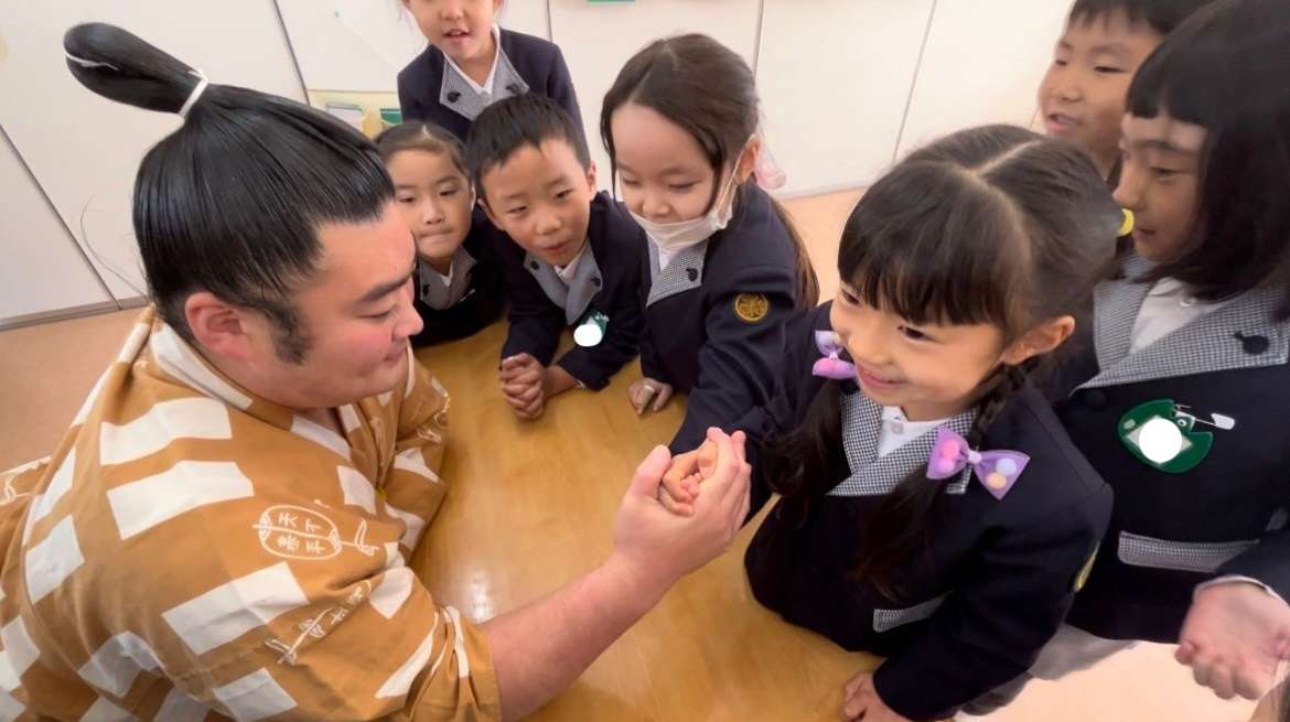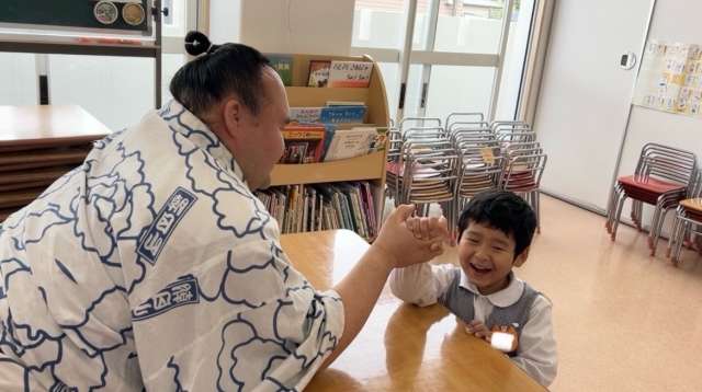 各クラスでの交流もあり、お相撲さんと仲良しになって