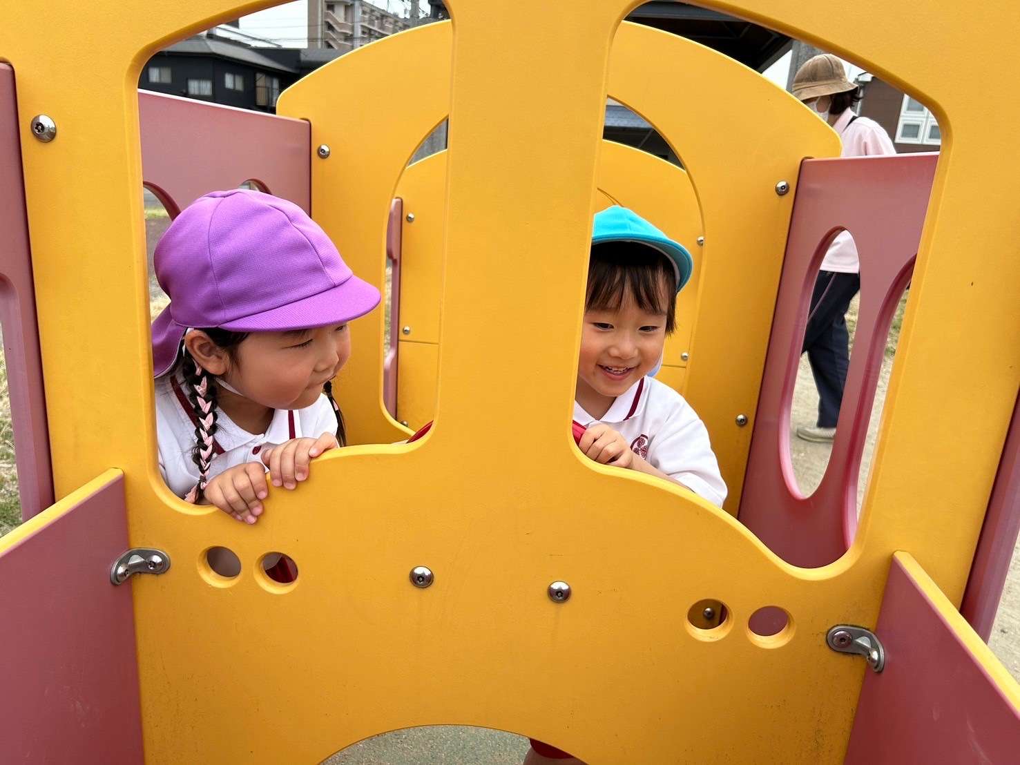 公園では、高い展望台にのぼって、「やっほー!!」と景色を楽しんだり、長いローラー滑り台や色々な遊具でたくさん遊ぶことができました。