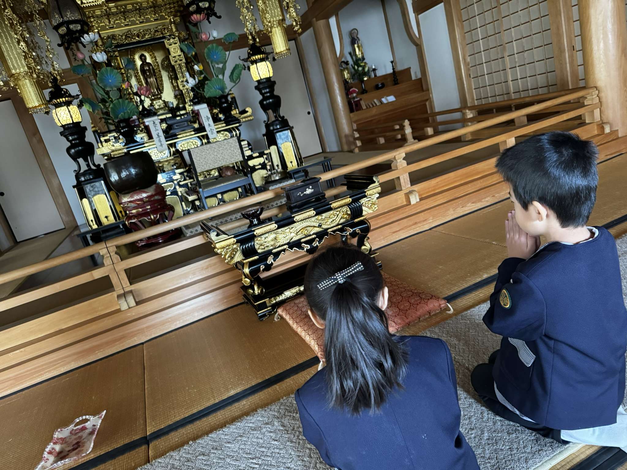 まずは代表の年長組さんが仏様にお供えをしてくれました。