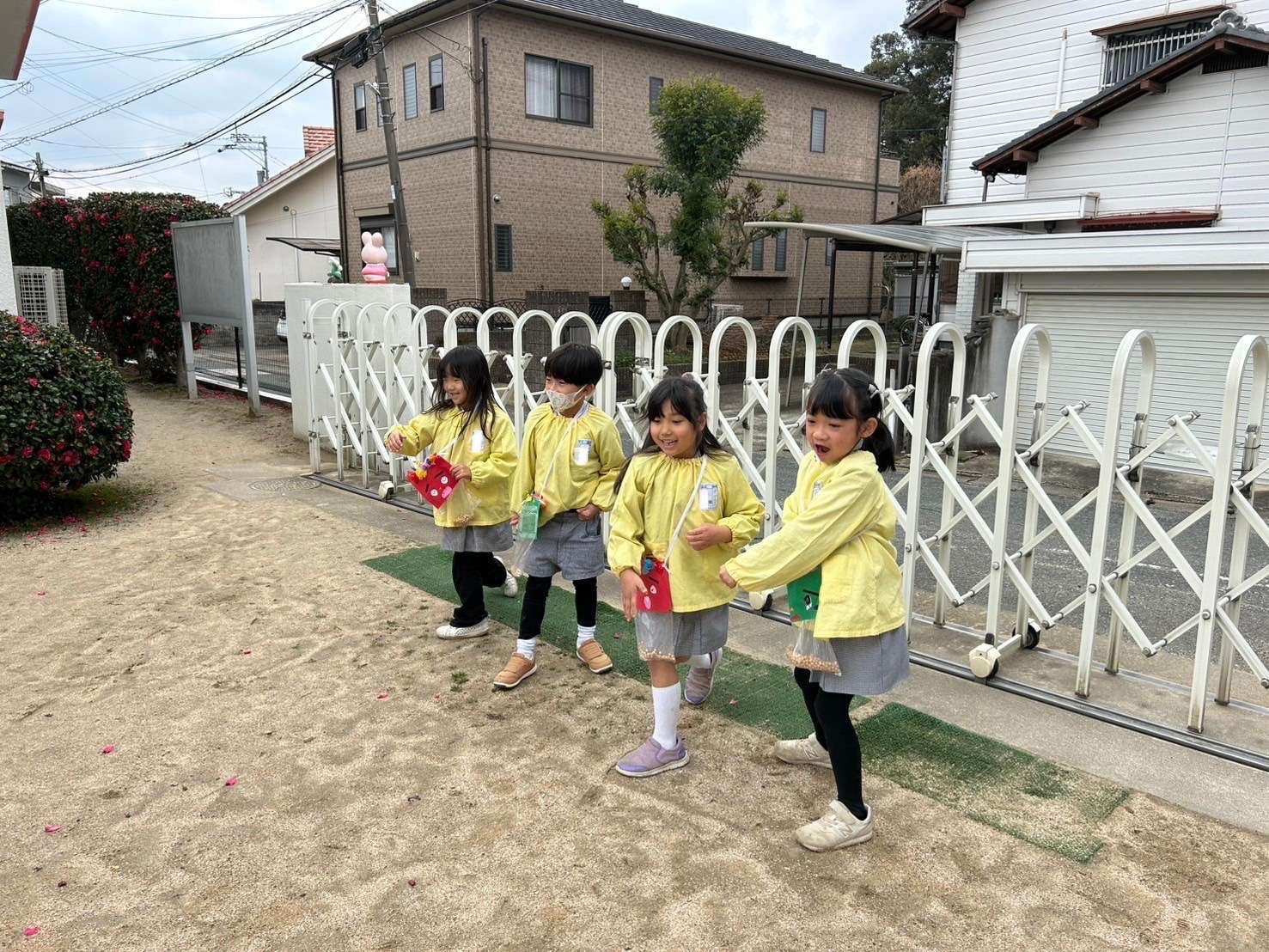 鬼からの手紙が届くと、「怖いよ〜」というお友達もいましたが、クラスのお友達と力を合わせて一生懸命豆を投げ、鬼退治をすることができました。