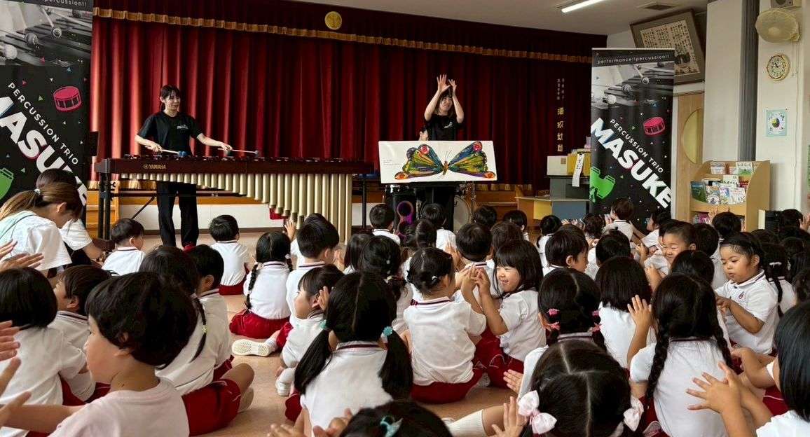 今日は春日市の事業「音楽の玉手箱」から打楽器トリオのマスケさんに来ていただきました。