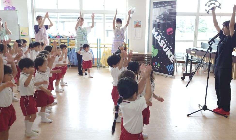 「ドラムセットがかっこ良かった!」「マリンバの音が綺麗だった」など豊かな音楽に触れ、子どもの心も豊かになる素敵な時間になりました。