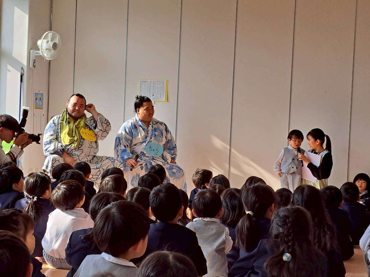 お相撲さんへの質問タイムでは、代表さんがクラスで考えた質問をインタビューして、今まで知らなかったことを沢山知る事が出来ました。