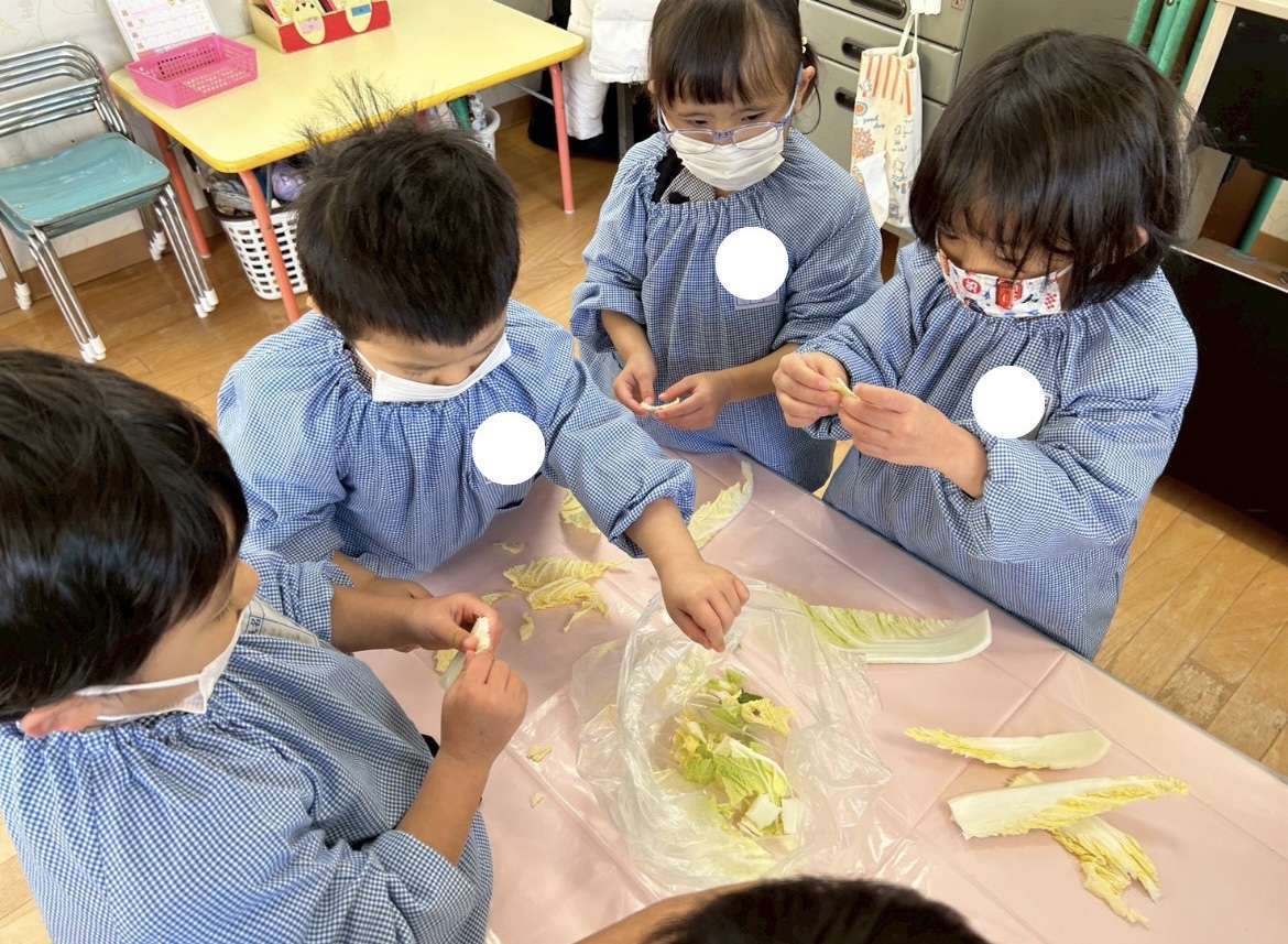 「あったかくておいしい♪」「僕がちぎった野菜だ!」とたくさん入っている食材に興味を持ちながら、美味しくいただきました