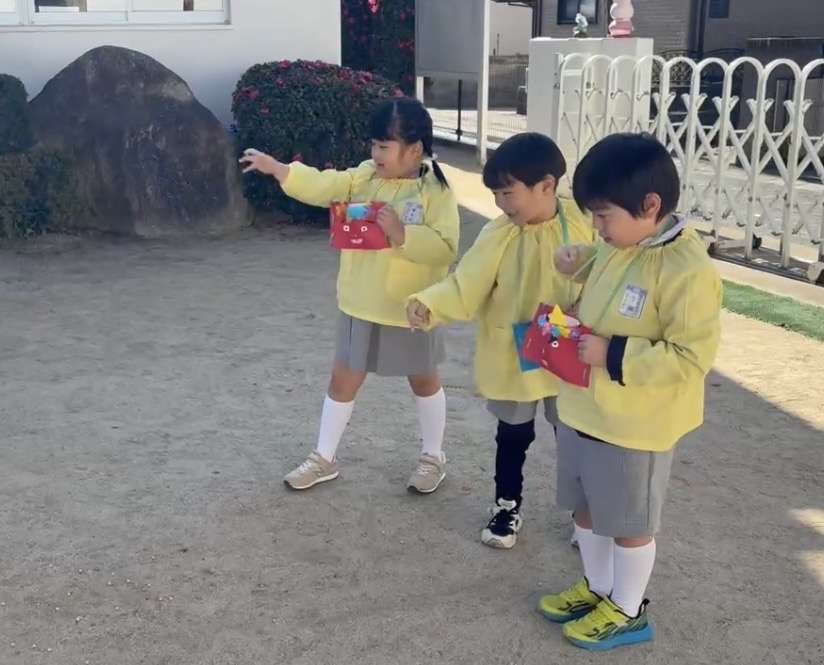 みんなで『豆まき』の歌を歌ったり、「鬼はー外!福はー内!」の掛け声で豆まきへの気合いは十分!!!