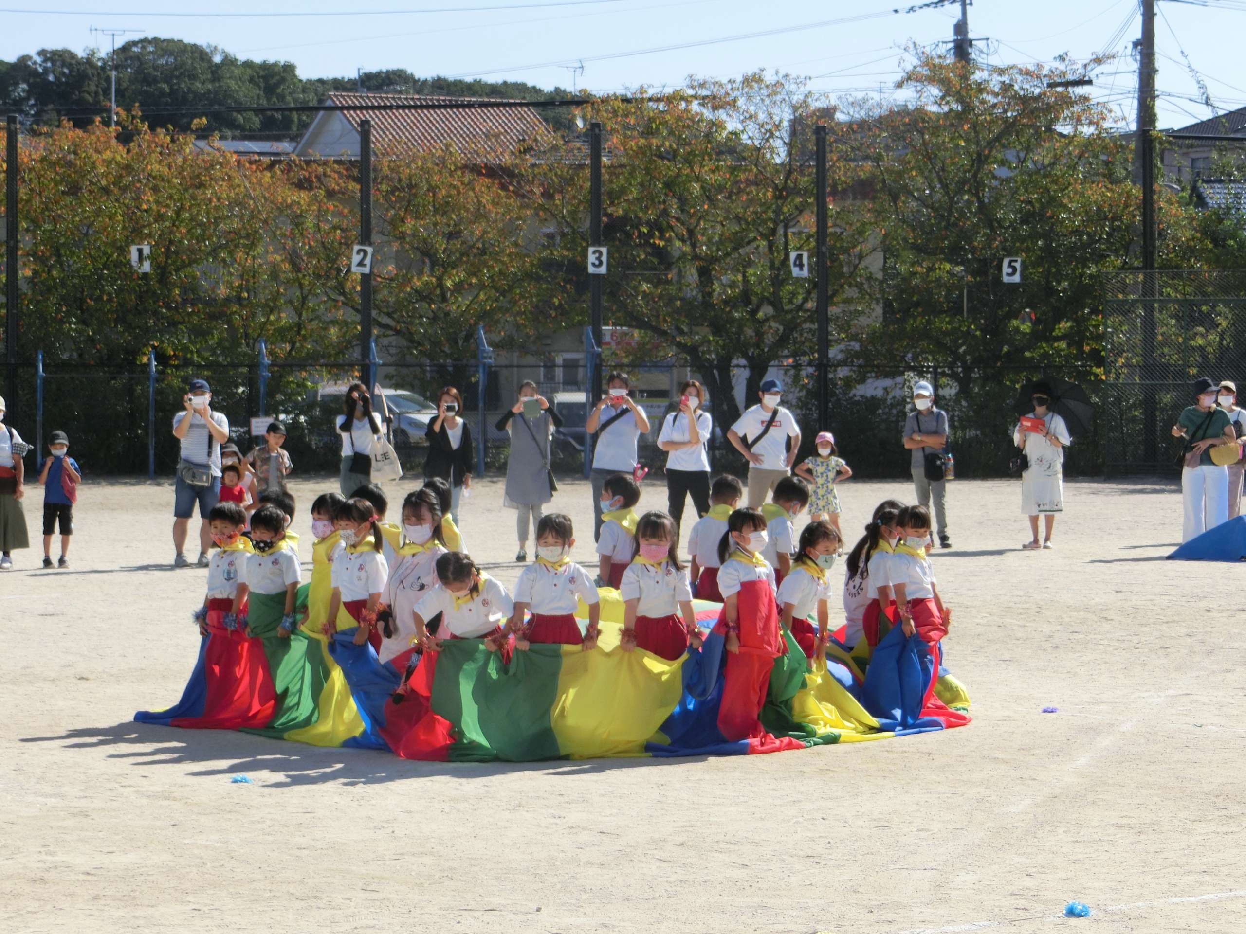 年中組はクラス全員で力を合わせてパラバルーンをしました!!