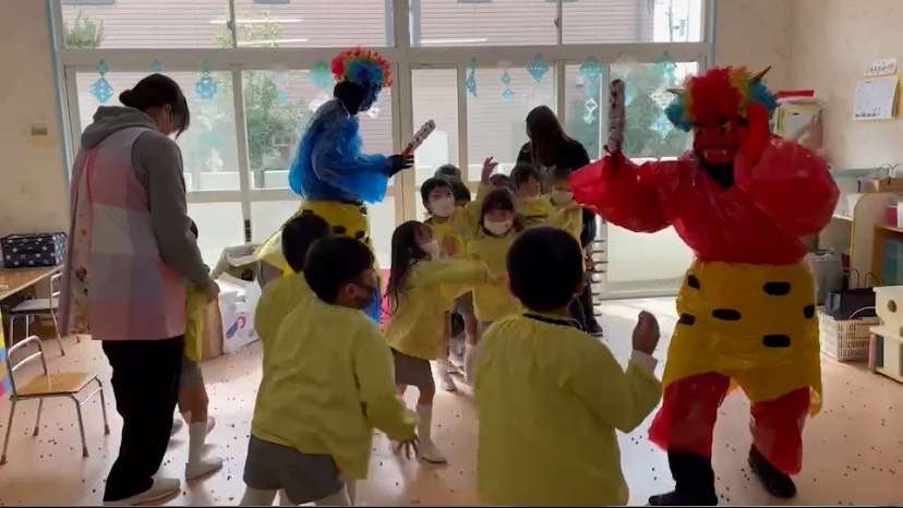 みんなが豆まきをしてくれたおかげで、幼稚園から鬼がいなくなりました!
