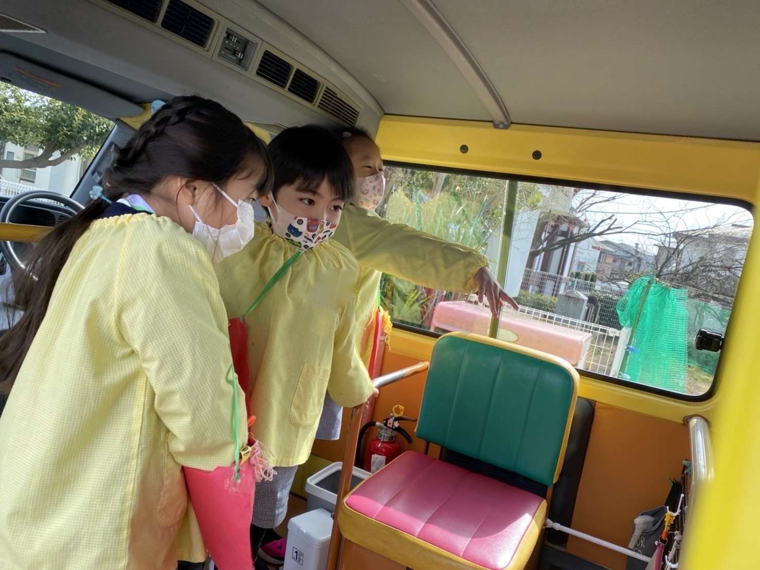 年長さんが、バスや本堂にも豆まきをしてくれました。