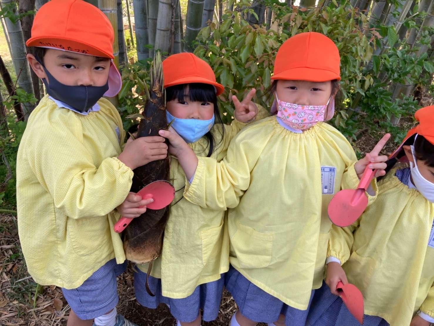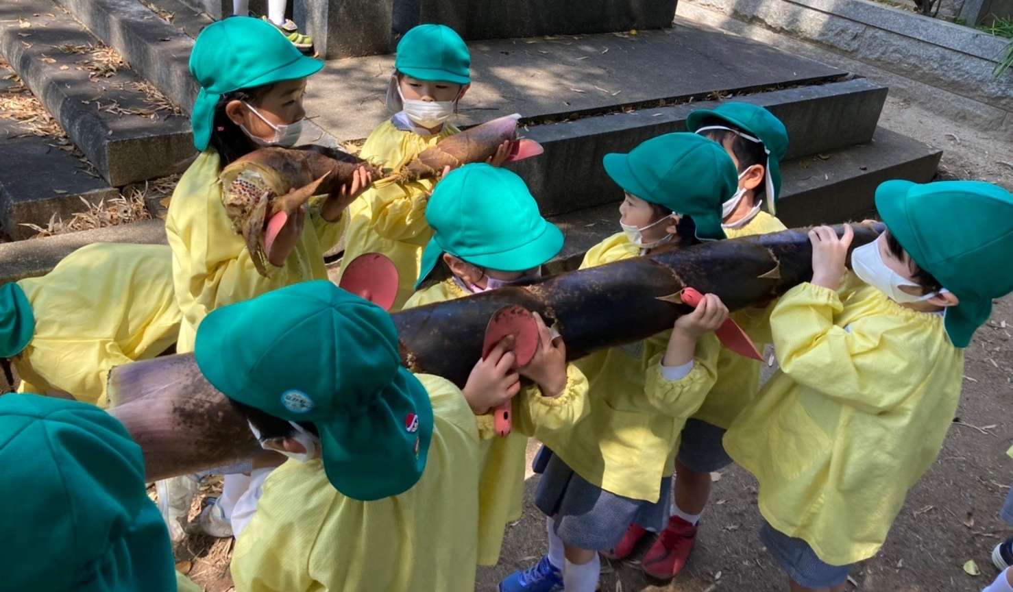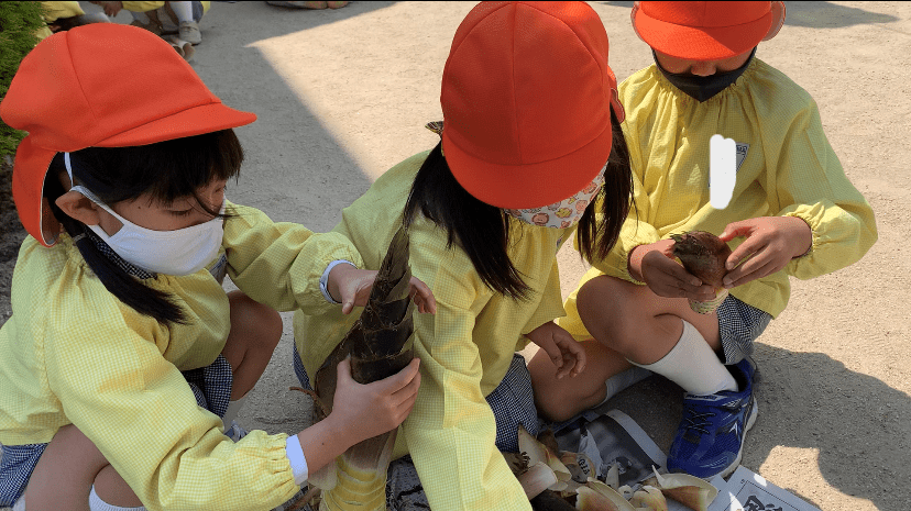 幼稚園の裏には竹林があり、大きなたけのこがいっぱい!!