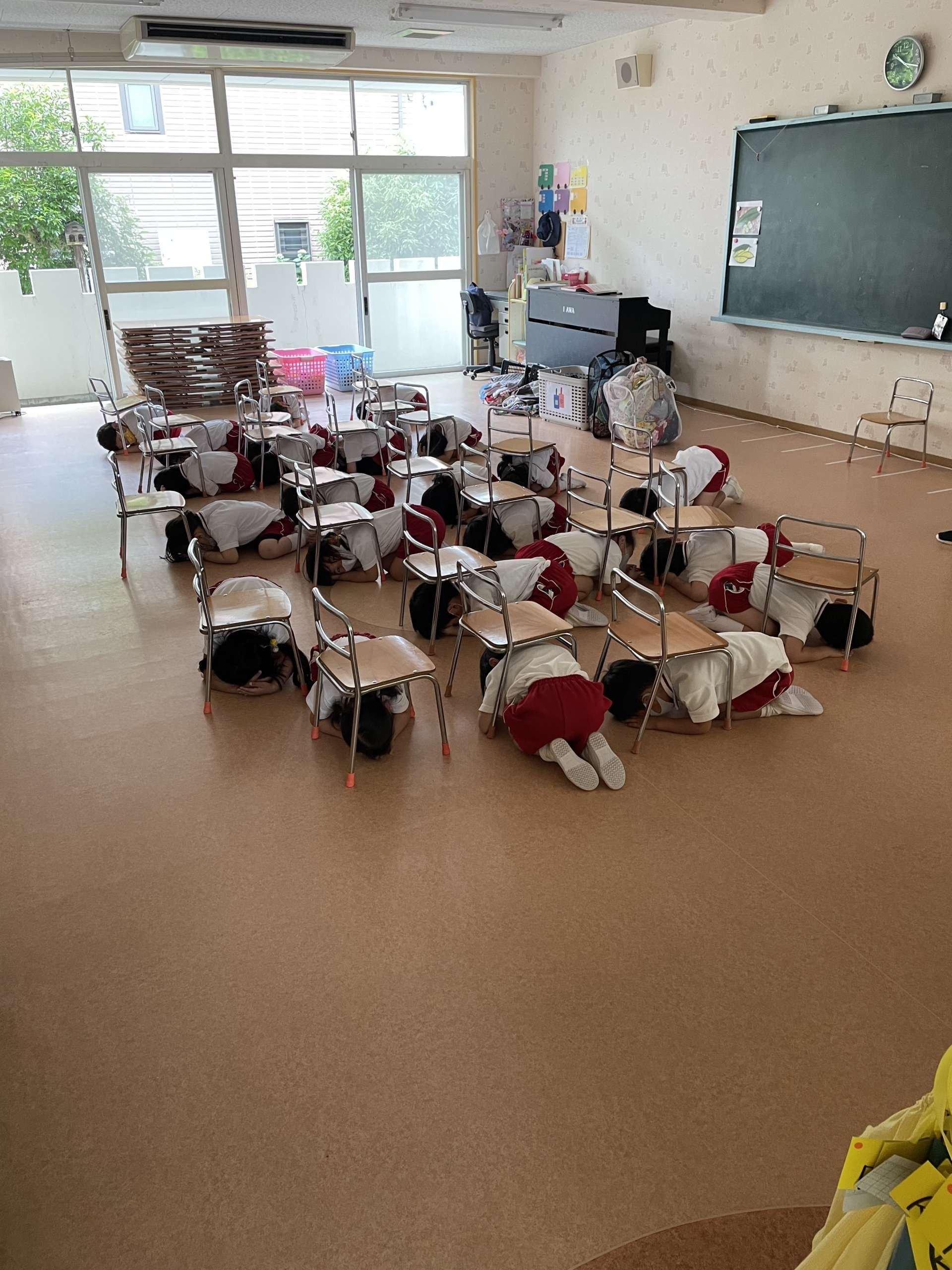 今日は、もしもの地震、火事に備えて避難訓練を行いました。