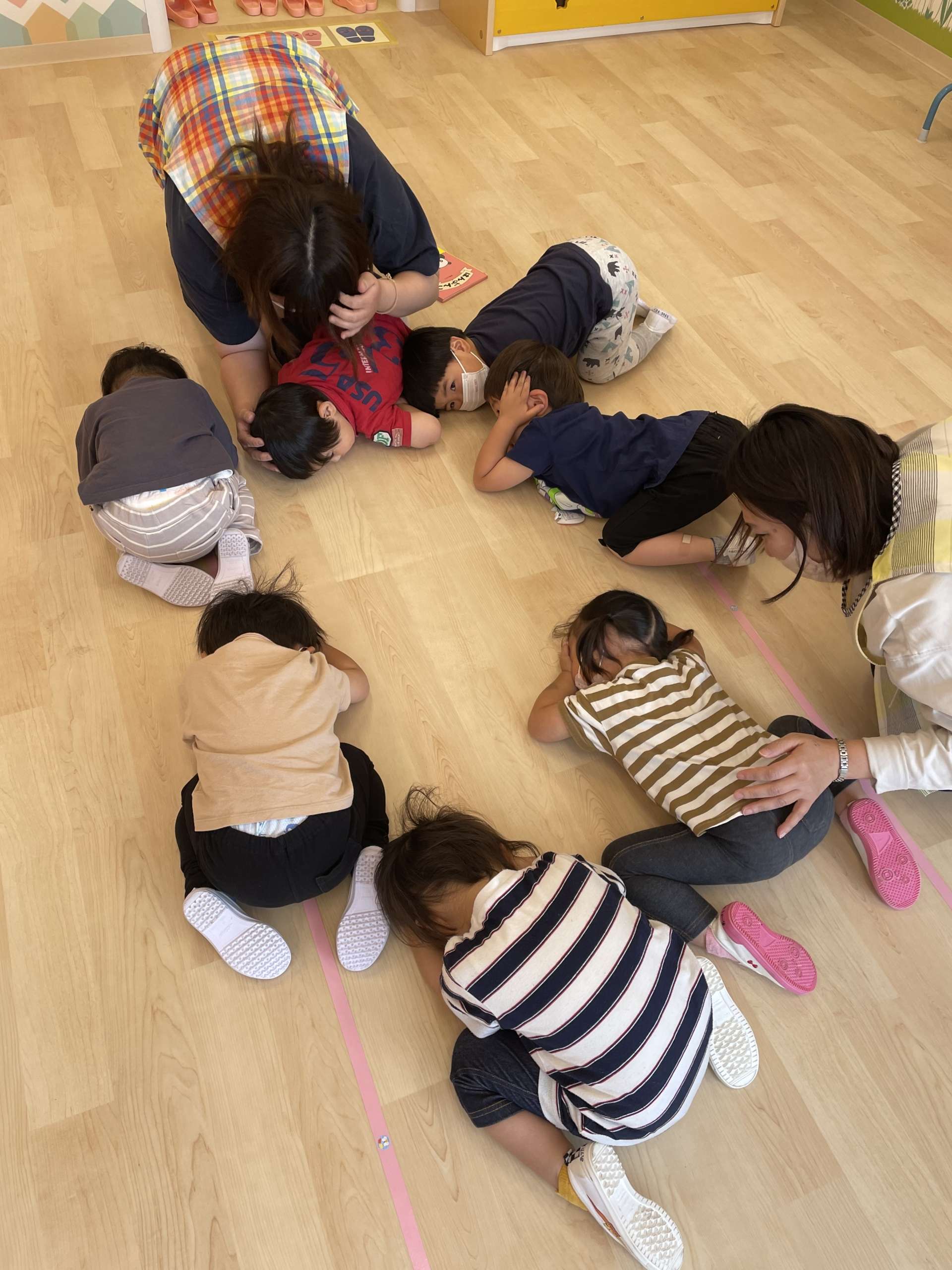 初めて避難訓練を経験する年少さんも、2歳のいちご組さんも