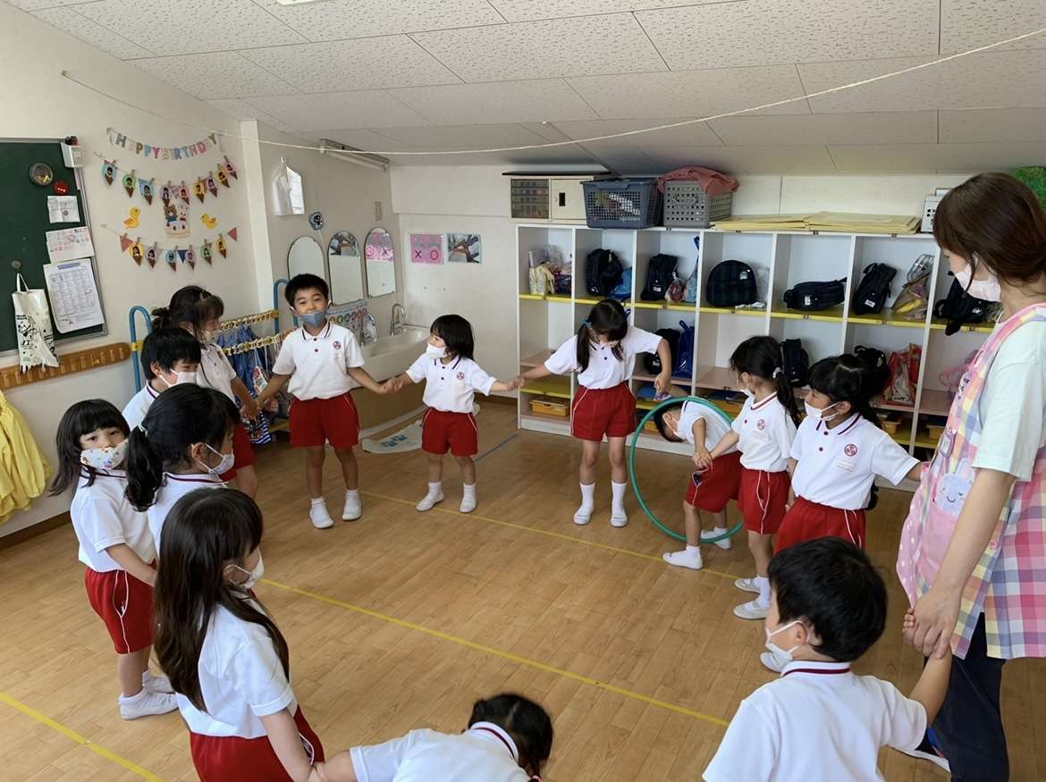 今年度、初めての異年齢児保育で各クラス違うふれあい遊びを楽しみました。