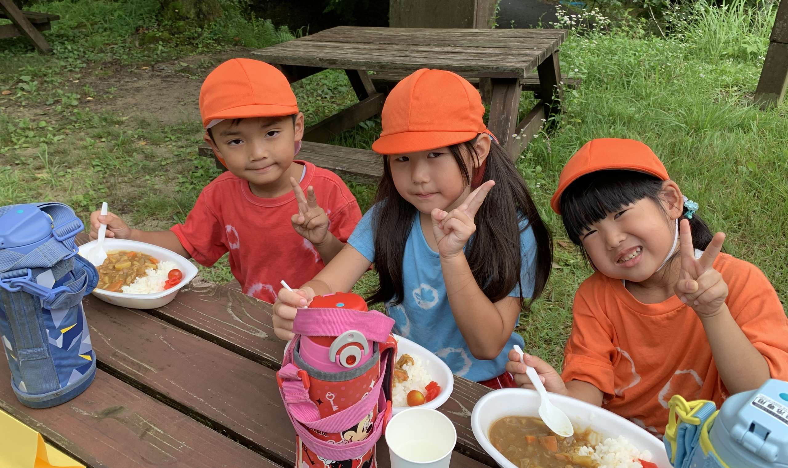 不安定な天気でしたが、施設に着くと雨は降らず、カレー作りやフィールドワーク、キャンプファイヤーも野外で行うことができました!