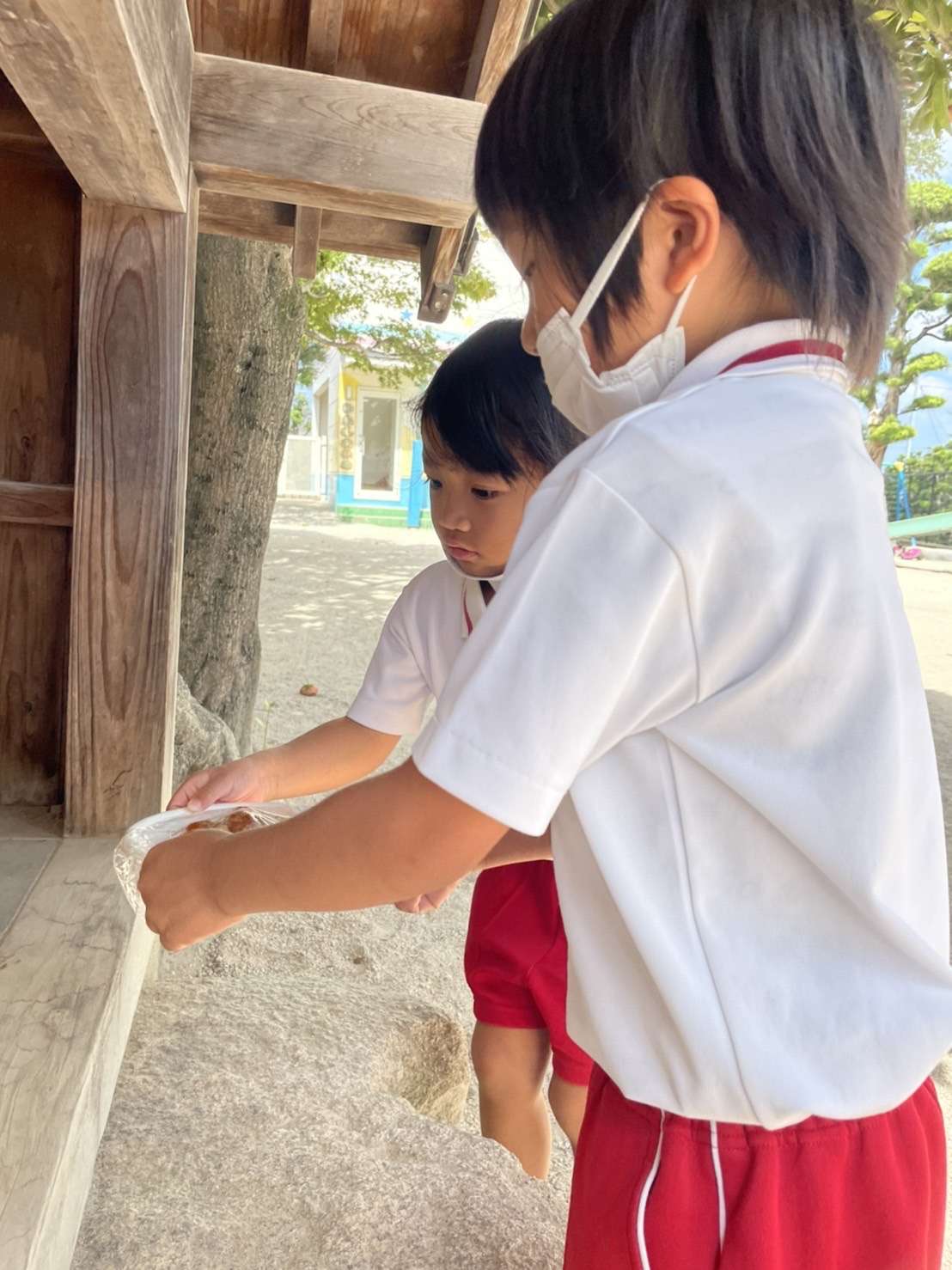 いちご組さんは”ぶどう”、年少組さんは”たぬき”、年中組さんは”コスモス”、年長組さんは”トンボ”