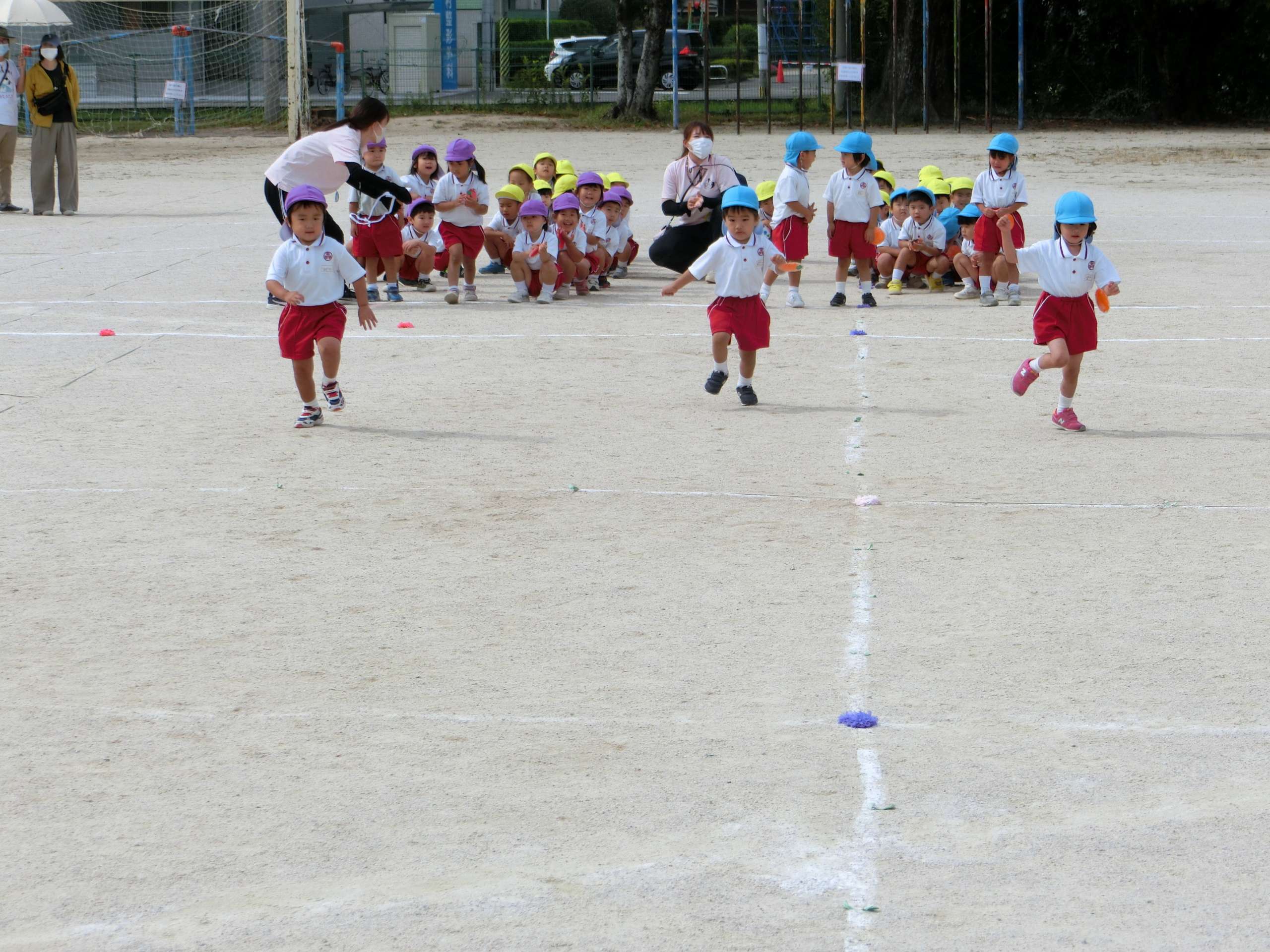 初めての運動会、初めての広いグラウンド、たくさんのお客さんの前にドキドキした子もいましたが、みんなで力を合わせて頑張りました!