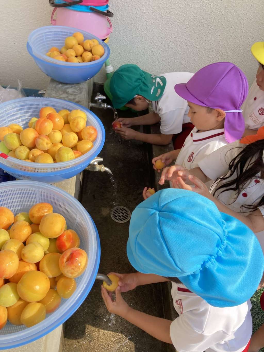 お預かりクラスのたんぽぽ組であんずを収穫し、ジャムを作りました! 今年はなんと... -