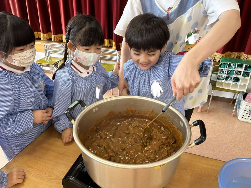 年長組で育てたなすを使ってカレーを作りました☆ 「包丁使うの初めてで心配…」と... -